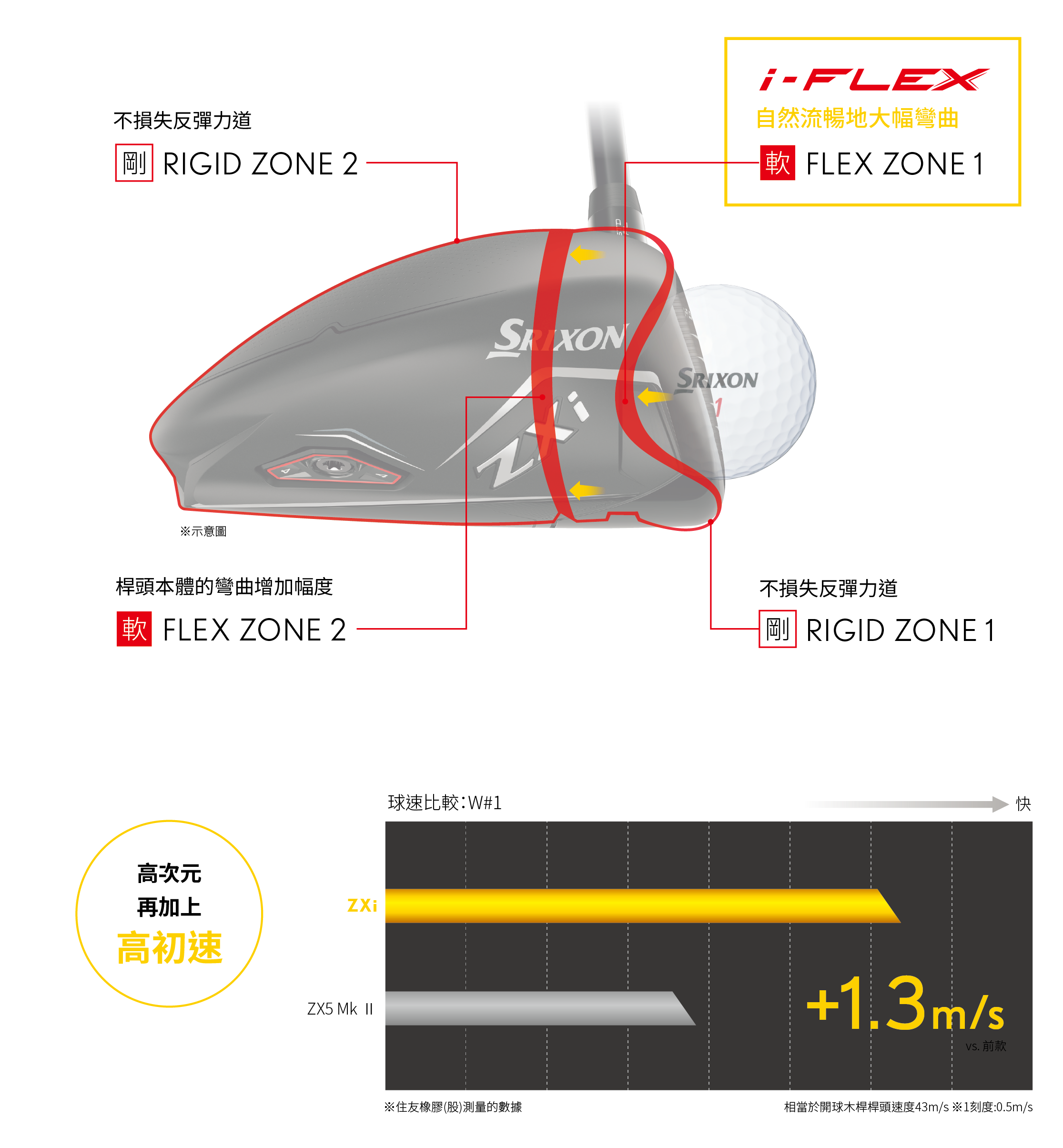 藉由i-FLEX技術, 擊出更流暢地大幅彎曲「FLEX ZONE1」。