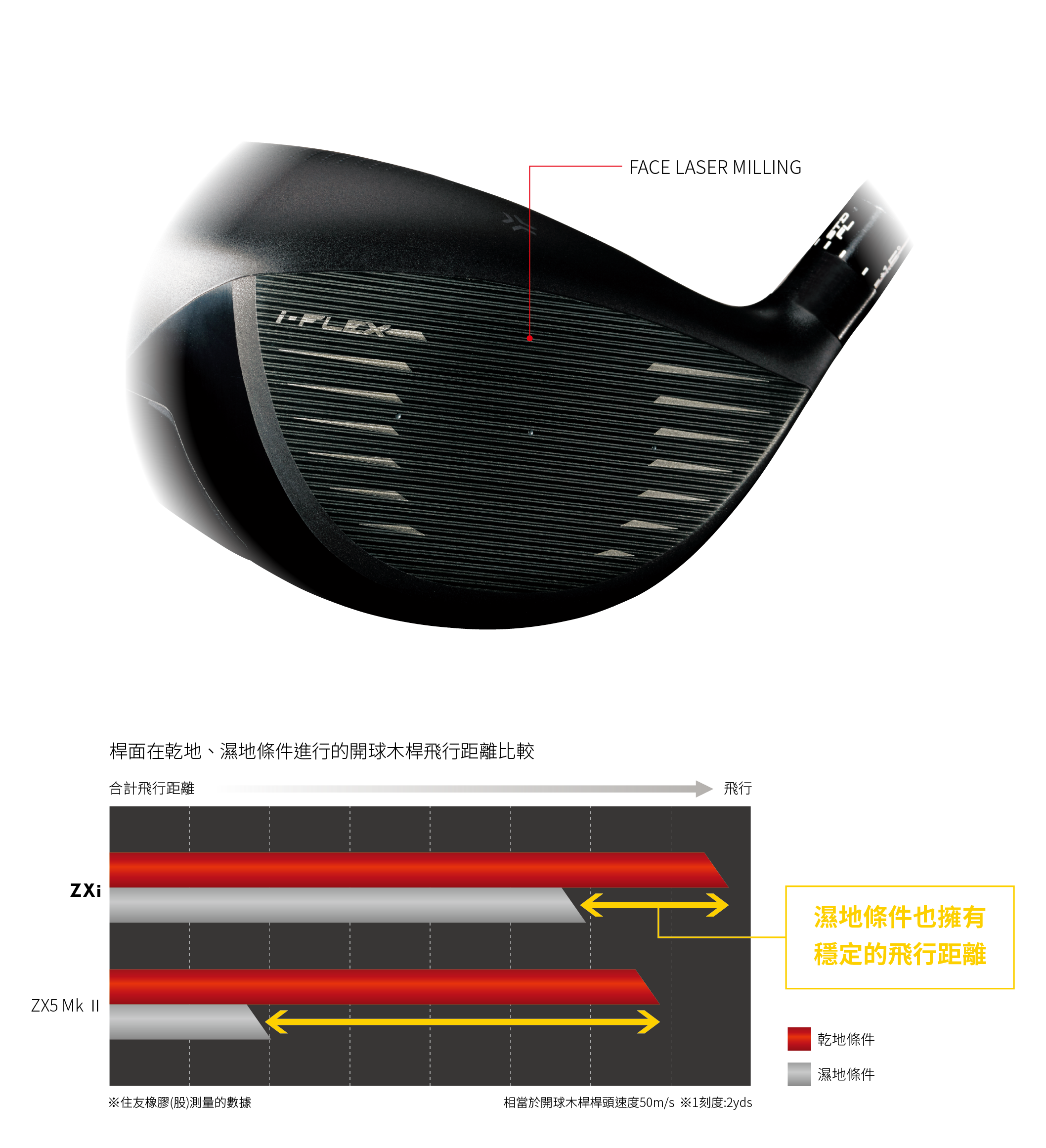 i-FLEX技術藉由增加桿面和桿頭的反彈,提升球速,
