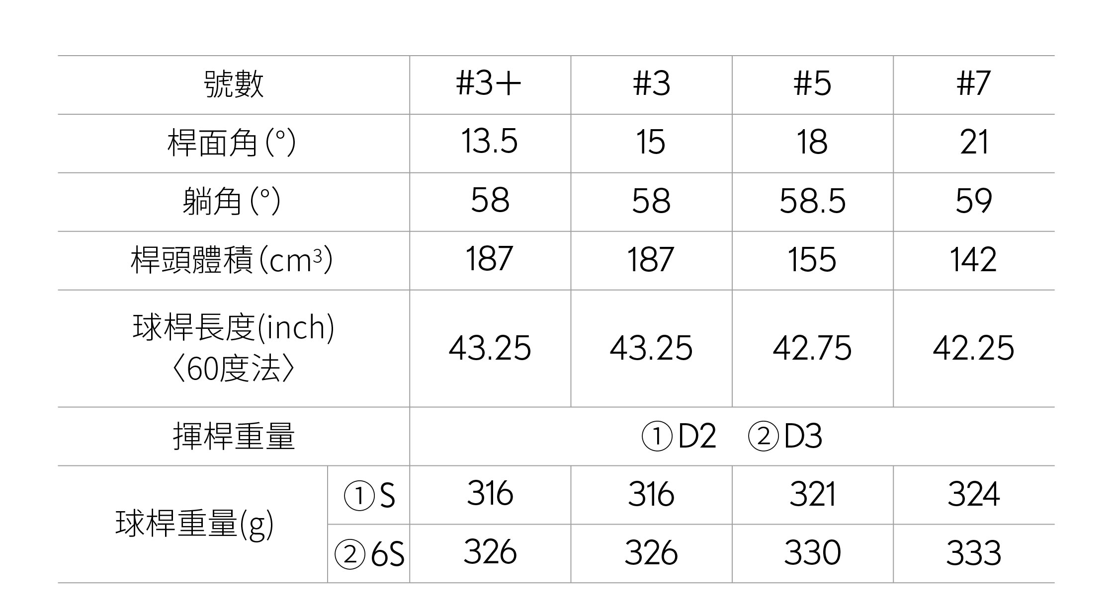 視覺統一各號數的桿頭形狀設計